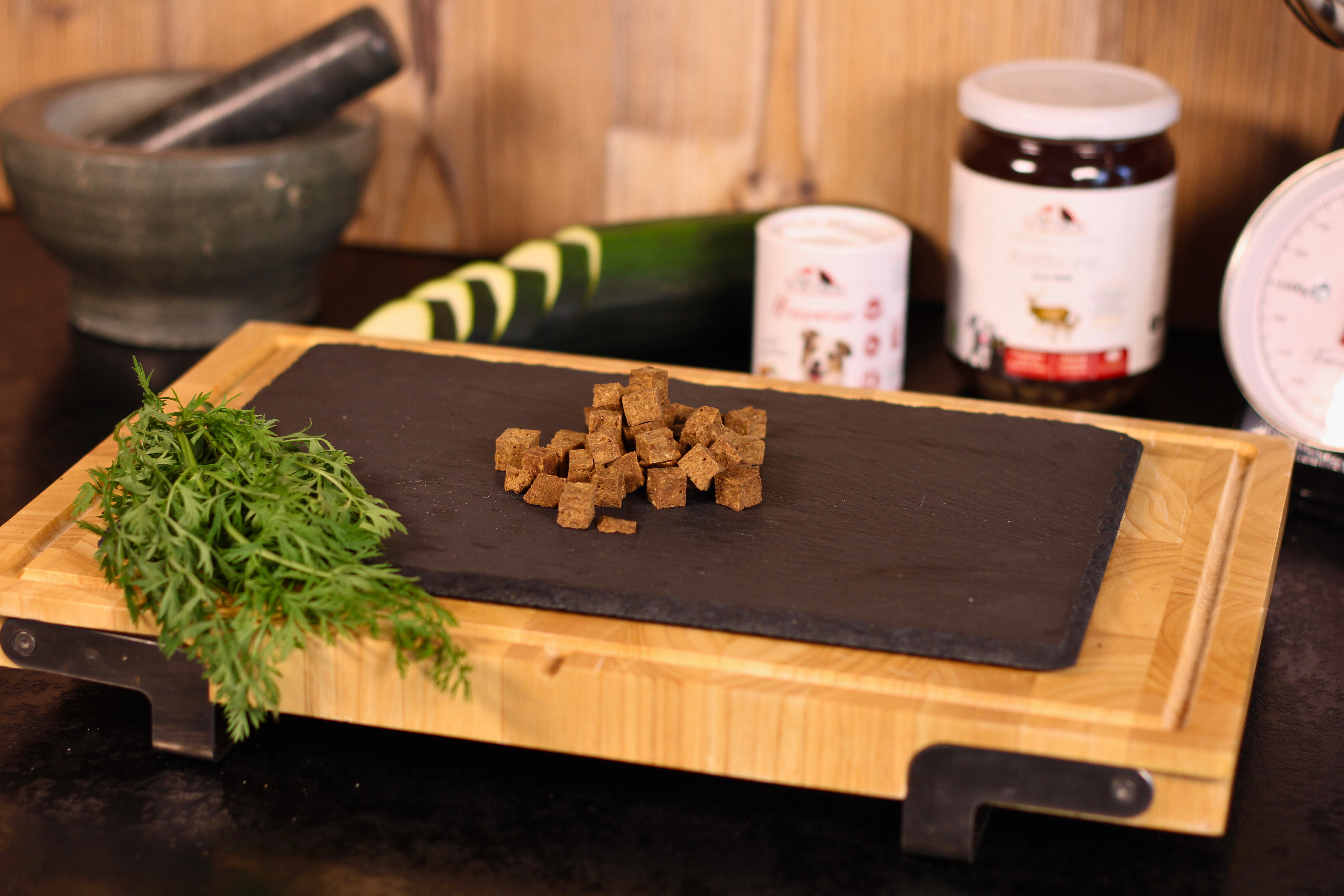 Eine besondere Leckerei für Zwischendurch. Geruchsneutral, krümelt nicht und schmeckt unserem Wolfgang Pumba sehr gut.