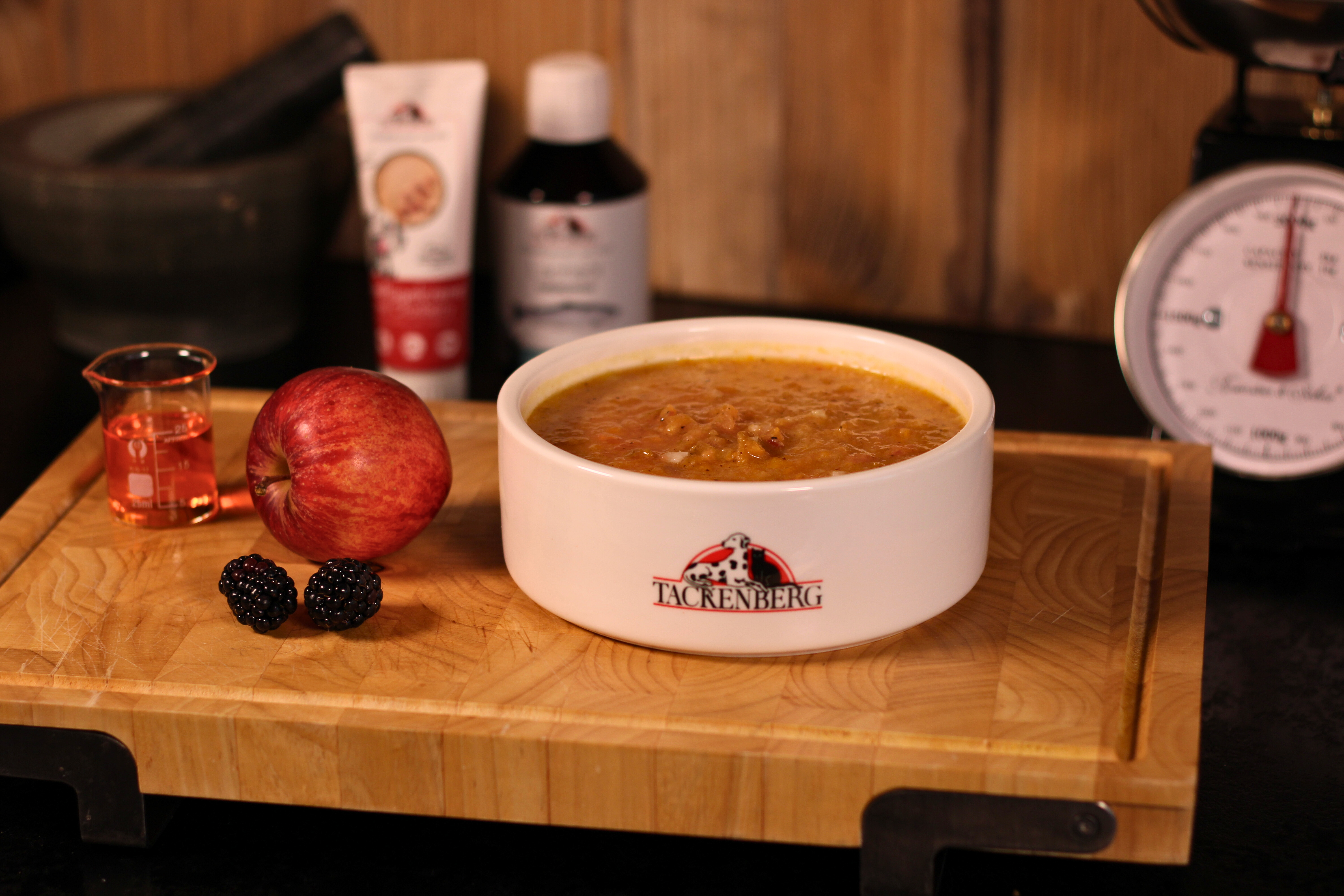 Das TACKENBERG BARF-Menü bietet eine ausgewogene Ergänzung für die Rohfleisch-Mahlzeit deines Lieblings. Genieße die fruchtige Frische und die gesunden Zutaten!