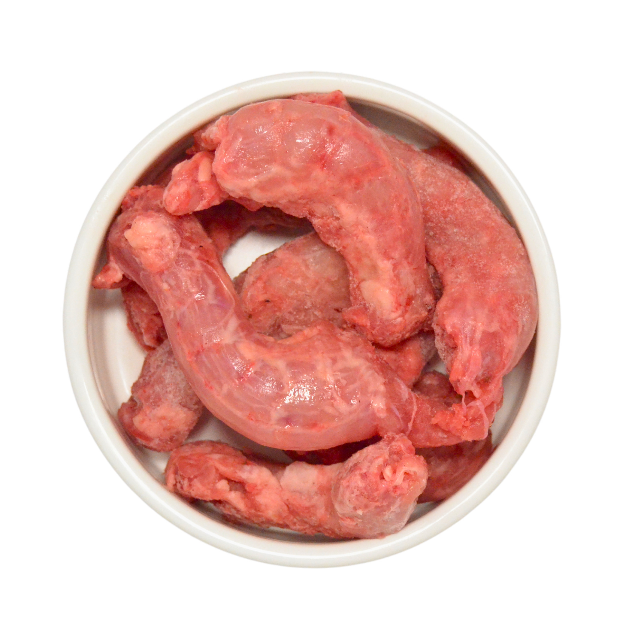 Die Hälse sind super einzelnd zu entnehmen. Gerade für kleinere Hunde eine gute Größe. Werden sehr gerne gefressen. Lassen sich nach dem Auftauen auch mit einem großen Messer nochmal gut teilen. Ich sage nur " Schlinger""."