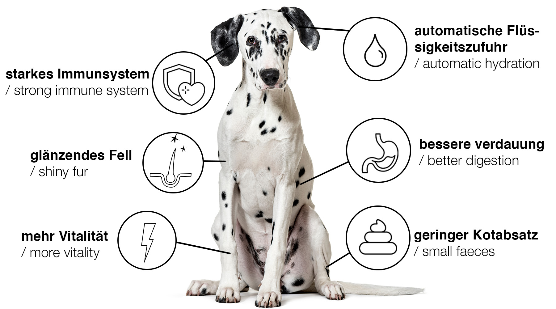 | Gesundheit: | Immunsystem , Gelenke , Fell & Haut , Abnehmen , Zunehmen , Verdauung |