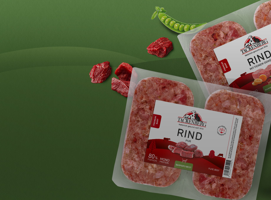 Gib deinem Hund das Beste mit unserem hochwertigen BARF Hundefutter. Unsere BARF Produkte sind reich an natürlichen Zutaten und bieten die perfekte Grundlage für eine artgerechte Ernährung. Frisches Fleisch, nahrhafte Innereien sowie wertvolles Gemüse und Obst sorgen für Vitalität und Wohlbefinden deines Hundes. Warte nicht länger – verbessere die Lebensqualität deines Hundes durch natürliche BARF Fütterung von Tackenberg. Profitiere von unserer langjährigen Erfahrung und bringe Abwechslung in den Napf deines Vierbeiners. Für ein glückliches und zufriedenes Hundeleben.
