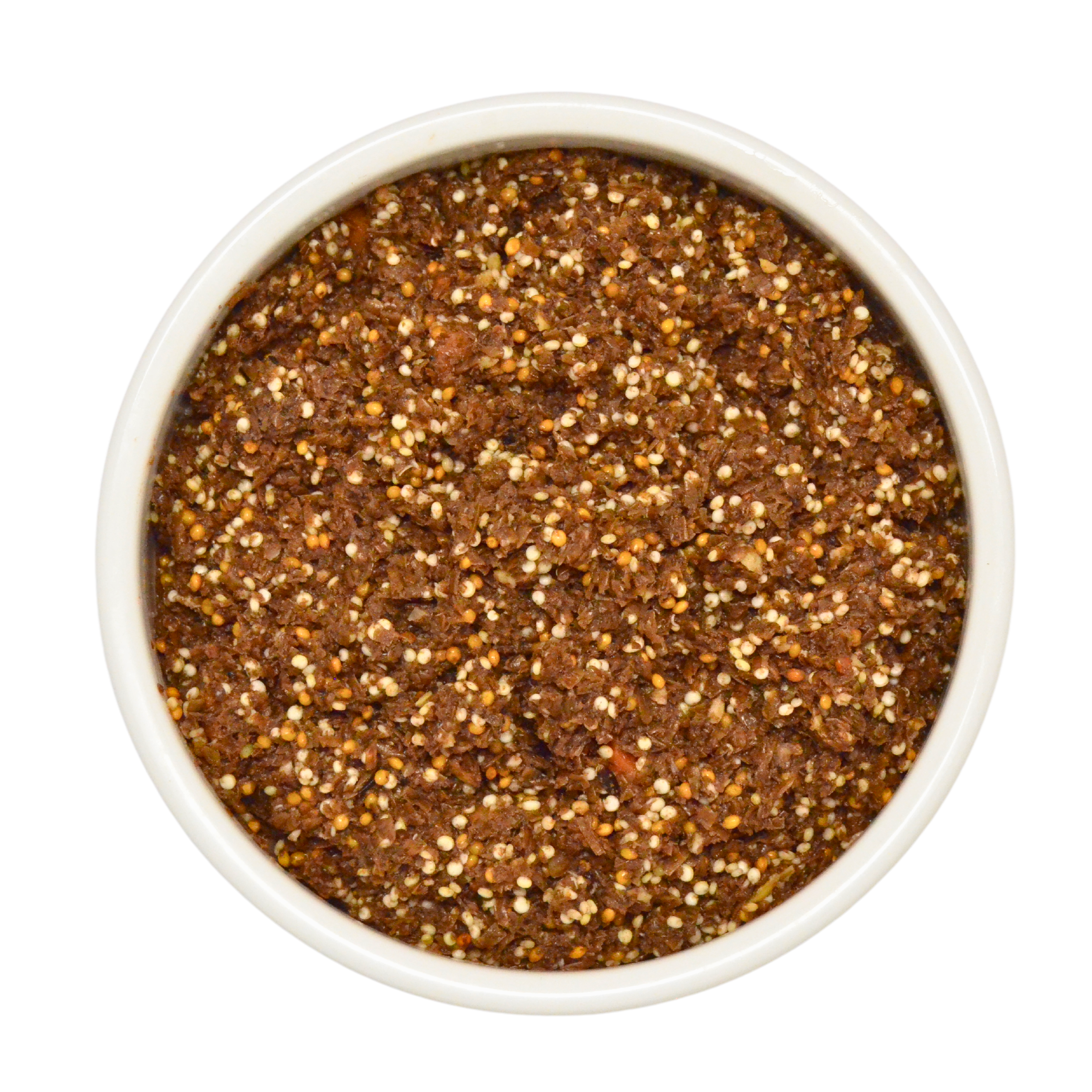 72,9% Insekten, 10% Hirse, 8% Möhren, 5% Kichererbsen, 2% Granatapfel, 1% Leinöl, 0,1% Eierschalenpulver, 1% Premix