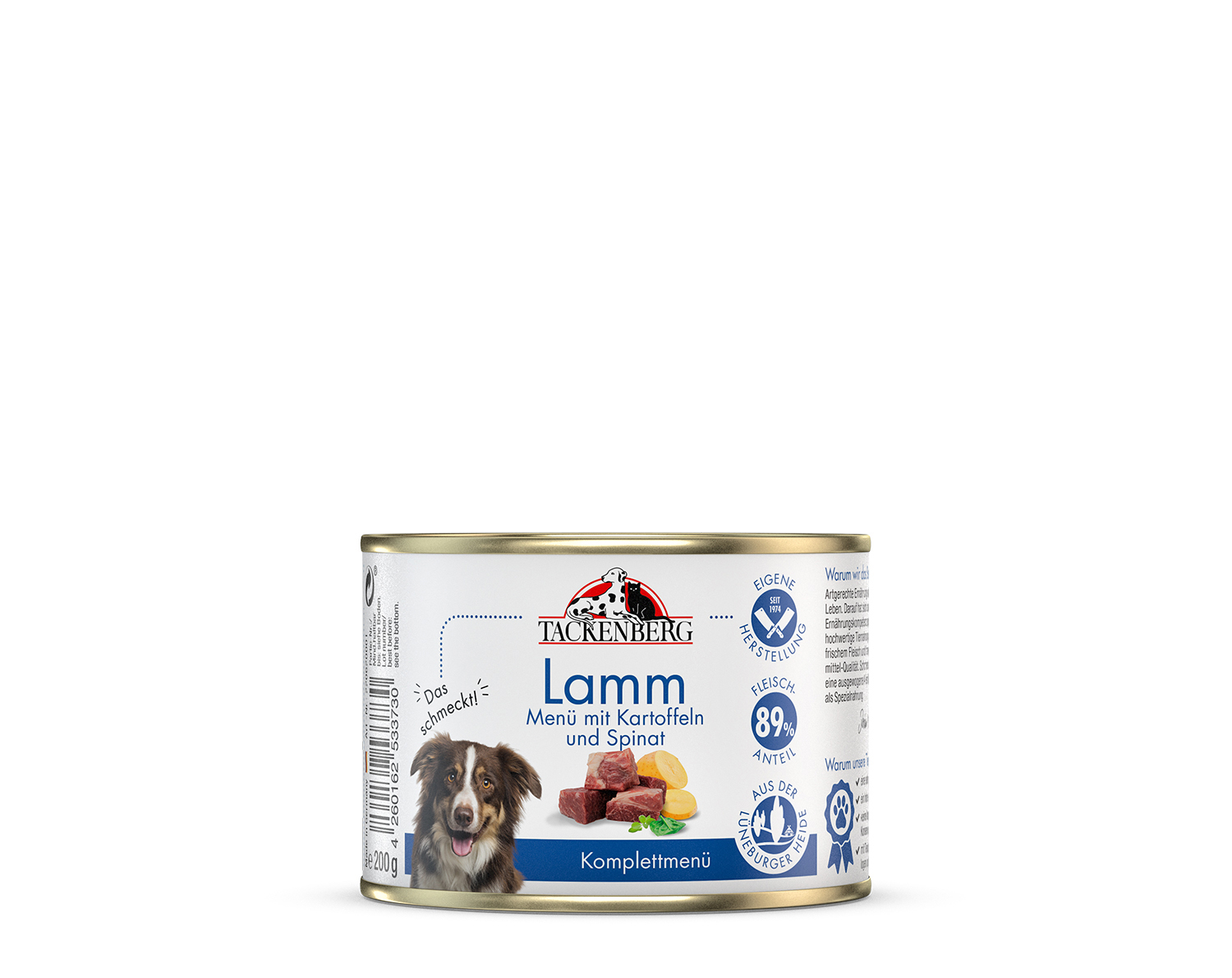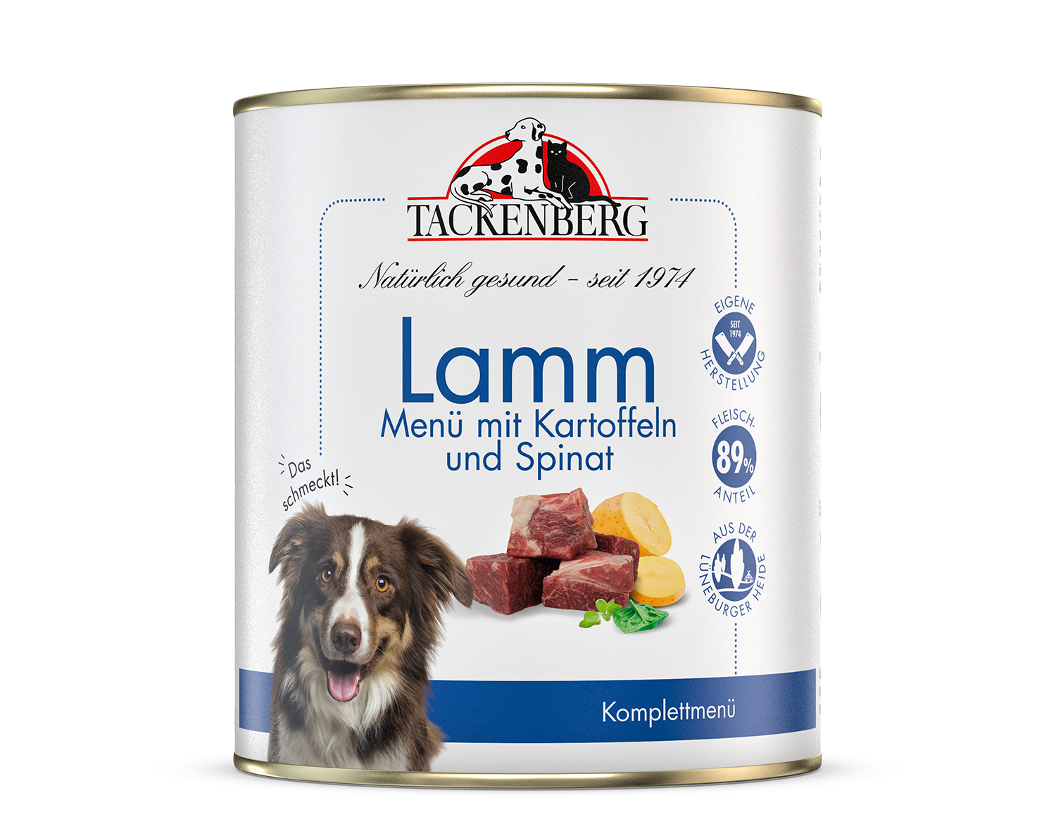 TACKENBERG Premium Dose mit Lamm, Feldkartoffeln und frischem Spinat