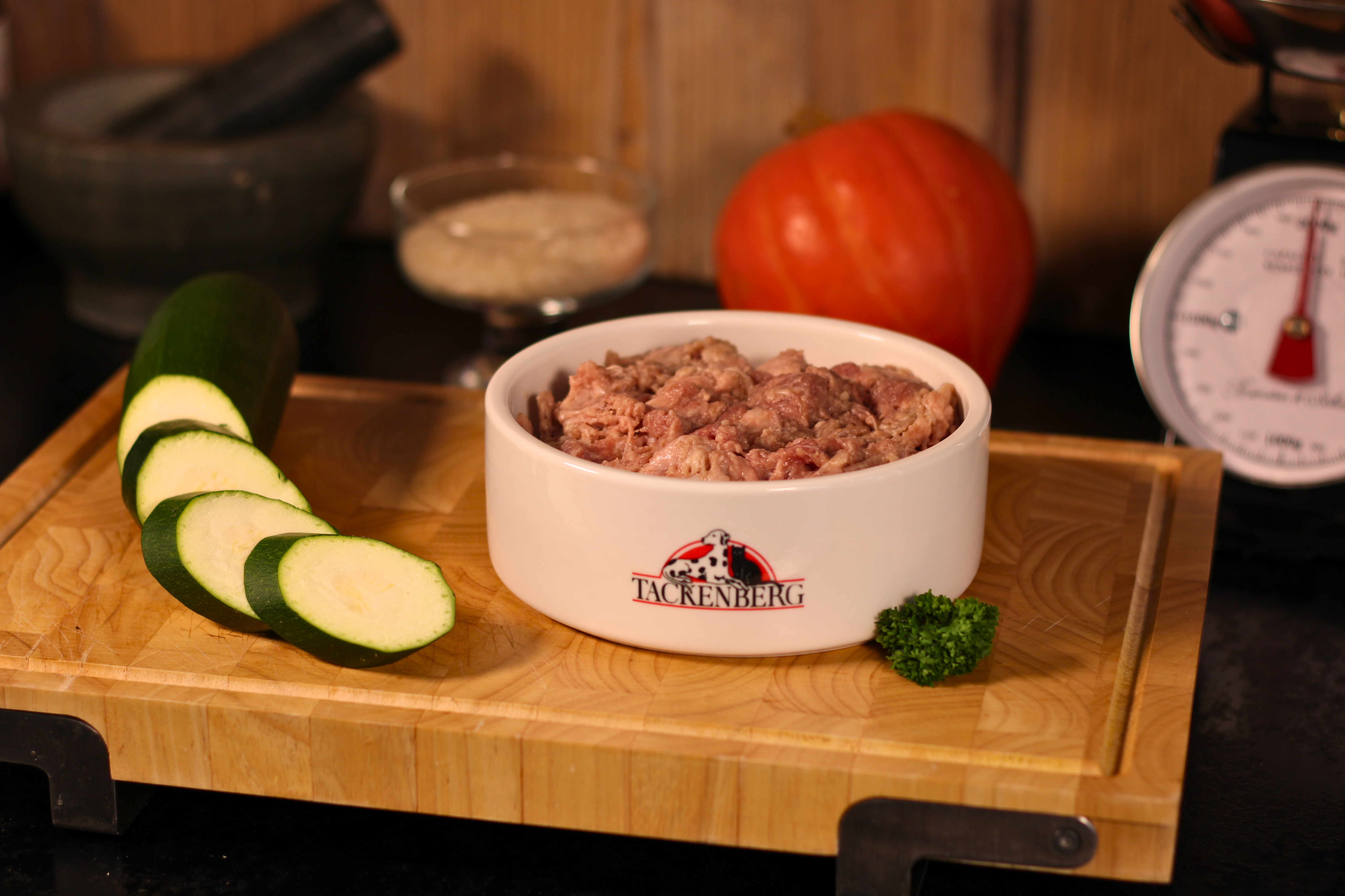 Um eine ausgewogene Mahlzeit zu gewährleisten, empfehlen wir bei Hunden ein Verhältnis von ca. 80% Fleisch und Innereien &, 20% pflanzlicher Komponente.