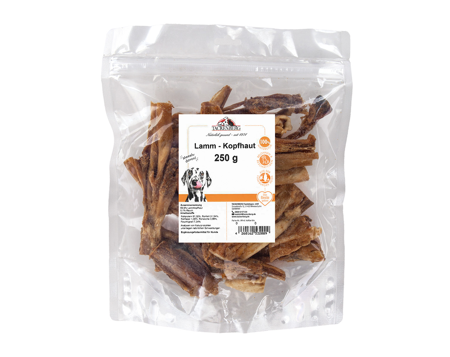 - Fettarmer knuspriger Kausnack von der Lammkopfhaut