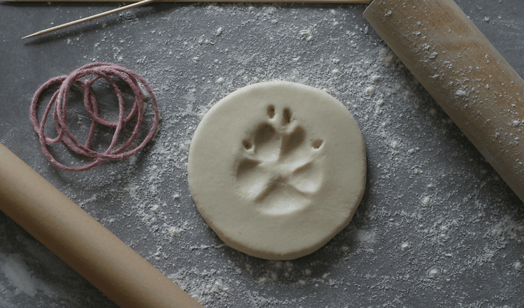 Zum Start das Mehl und Salz vermischen. Schluckweise Wasser hinzugeben, bis sich eine gleichmäßige Knetmasse bildet. Um die Geschmeidigkeit des Teigs zu optimieren, ein wenig Öl ergänzen. Wer mag, verleiht dem natürlichen Material mit Lebensmittelfarbe einen bunten Look – das ist für die Pfoten unbedenklich. Der Salzteig wird am besten direkt auf Backpapier ausgerollt. Damit die Abdrücke richtig plastisch wirken, sollte die Substanz einen Zentimeter dick sein.
