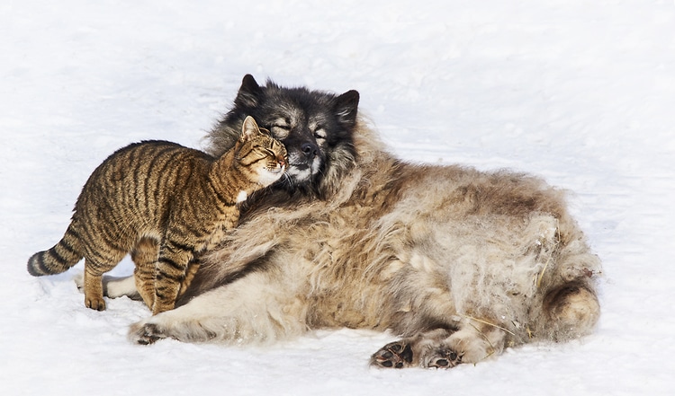 Auch wenn die meisten Hunde und Katzen das gesamte Jahr über Fell verlieren, haaren sie zweimal besonders stark. Der Zeitpunkt des Fellwechsels ist generell von der Außentemperatur sowie der Tagesdauer abhängig. Hält sich der Vierbeiner viel draußen auf, macht sich der Wechsel stärker bemerkbar, als z. B. bei einem klimaneutral gehaltenen Stubentiger. Auch Rasse, Alter, Hormone sowie der allgemeine Gesundheitszustand wirken sich auf den Prozess der Erneuerung des Haarkleides bei Hunden und Katzen aus. Kastrierte Tiere haaren oft mehr als unkastrierte, ältere mehr als junge und Hündinnen besonders vor der Läufigkeit. Dabei kann verstärktes Haaren nicht nur durch den Fellwechsel, sondern u. a. auch durch Stress, Parasiten oder Allergien ausgelöst werden. Treten kahle Stellen, Hautreizungen oder ein starker Juckreiz auf, sollte der Tierarzt aufgesucht werden. Dies gilt auch für den Fall, dass der Vierbeiner zu spät, sehr mühsam oder gar nicht sein Fell wechselt. Es gibt Rassen, wie z. B. Pudel, die so gut wie gar nicht haaren und als besonders allergikerfreundlich gelten. Das Fell dieser Hunde wächst meist immer länger, bis es gestutzt oder geschoren wird. Der normale Fellwechsel kann sechs bis acht Wochen dauern und macht sich im Frühjahr am stärksten bemerkbar: Der alte Winterpelz muss runter, damit neues Fell wachsen kann. Für diesen Prozess – und ein gesund glänzendes Ergebnis – benötigen Hunde und Katzen zusätzliche Nährstoffe und Pflege.