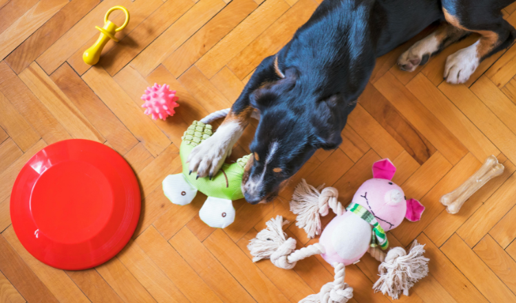 Tipp: Die Größe des Korbes und der Gegenstände solltest Du auf Deinen Vierbeiner abstimmen. Für kleine Hunde eignen sich beispielsweise auch eine Salatschüssel oder ein Blumenübertopf.