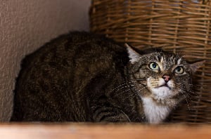 Hat Deine Katze Angst, sind ihre Ohren an den Kopf angelegt. Fühlt sie sich stark bedroht, sieht man oft nur die Rückseite der Ohren, sie drückt sich an den Boden und rundet ihren Rücken. Der Schwanz ist unter dem Körper versteckt. Eventuell hörst Du die Fauchen, aber auch Gähnen kann hier ein Zeichen von Stress und Verunsicherung sein.