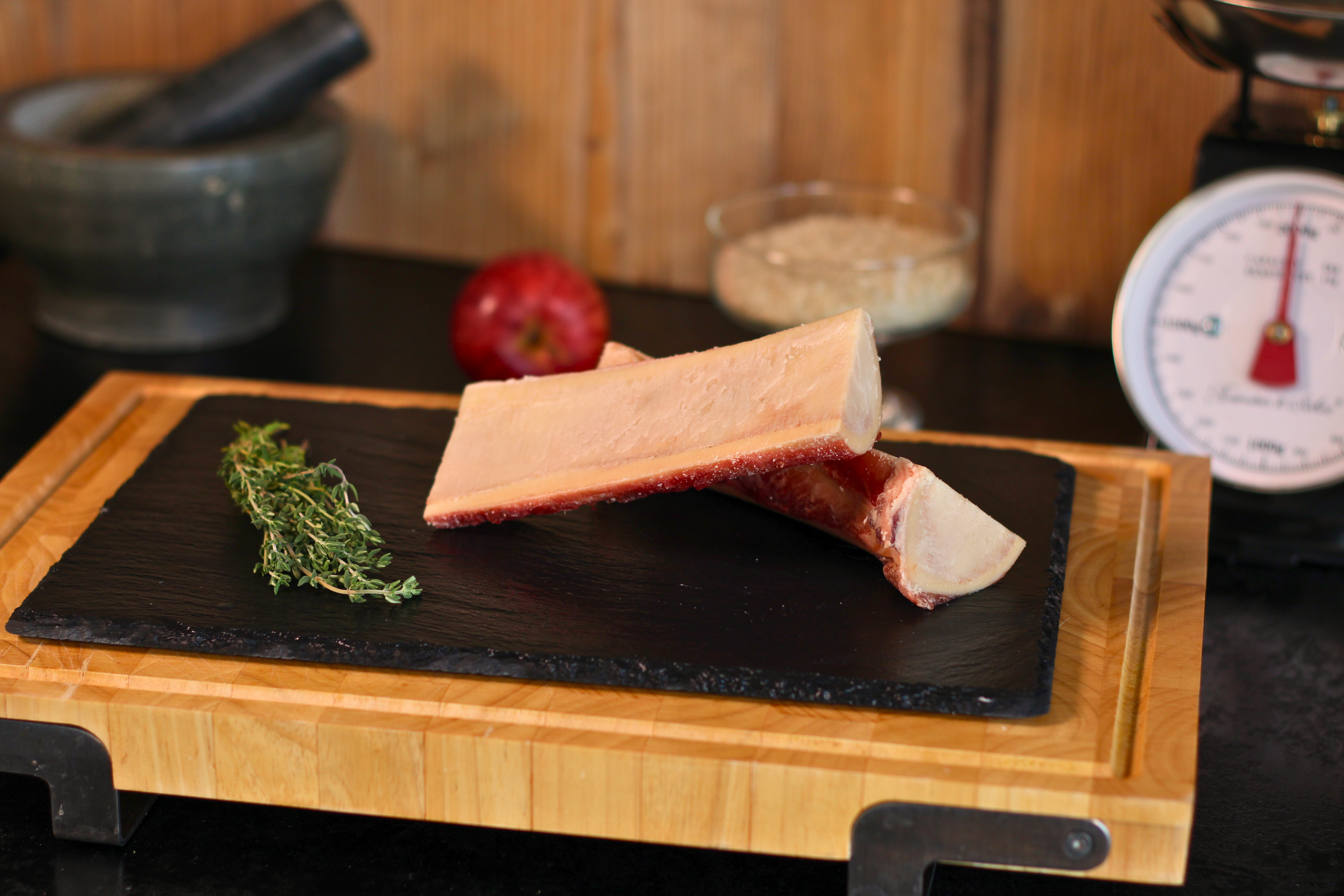 Entdecke unsere längs aufgesägten Markknochen, die deinem Vierbeiner ein genussvolles Erlebnis bieten. Dein Hund wird das nahrhafte Mark mit Freude herausarbeiten. Die Markknochen sind eine hervorragende Quelle für Kalzium, das für die Gesundheit deines Hundes unerlässlich ist.