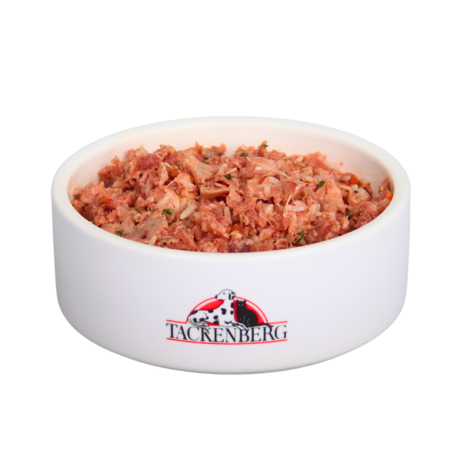 50 % Pferdefleisch, 25 % Pferdezunge, 15 % Reis, 5 % Möhren, 3 % Spinat, 1 % Lachsöl, 1 % Premix