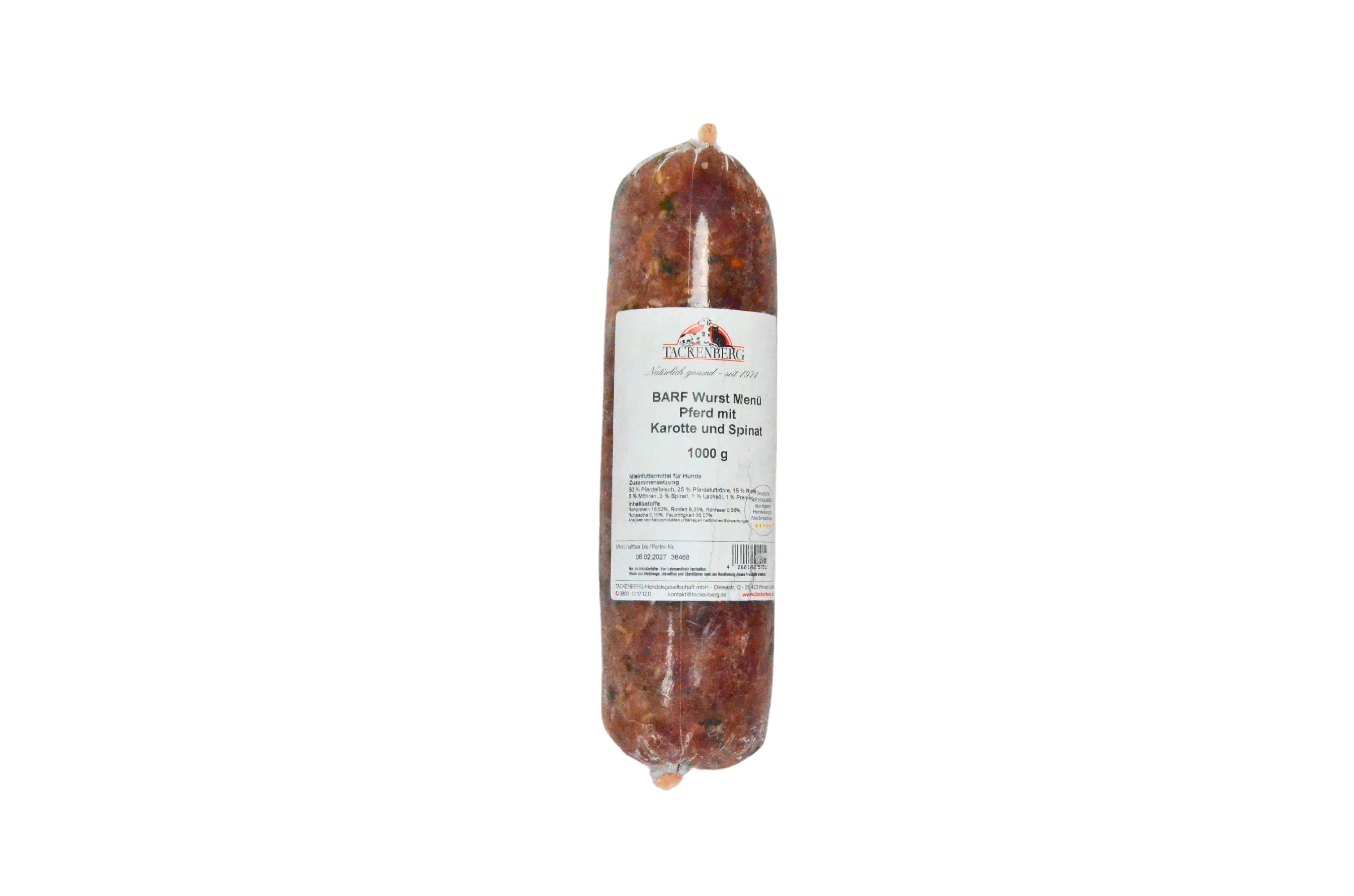 Die platzsparend verpackte BARF Menü vom Pferd mit Karotte und Spinat ist besonders für allergische Hunde und bei Ausschlussdiäten geeignet. Für eine vollwertige BARF-Mahlzeit taust du das fertige Menü einfach im Napf auf und servierst es deinem Vierbeiner bei Zimmertemperatur.