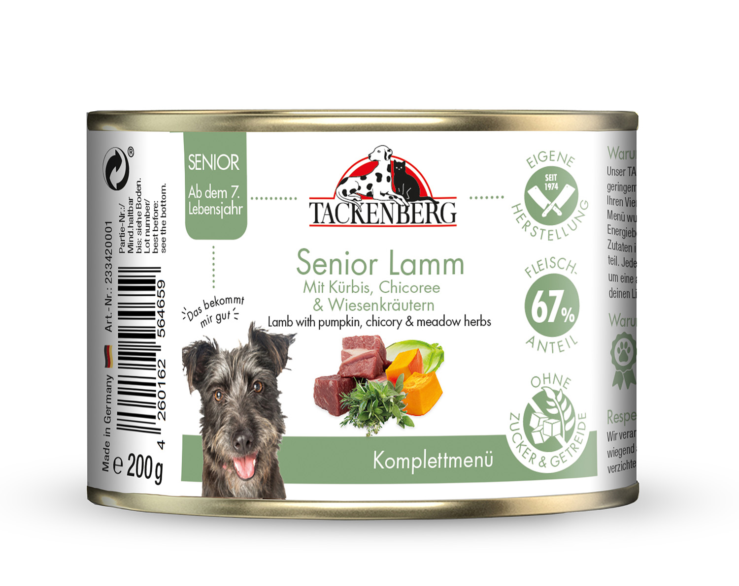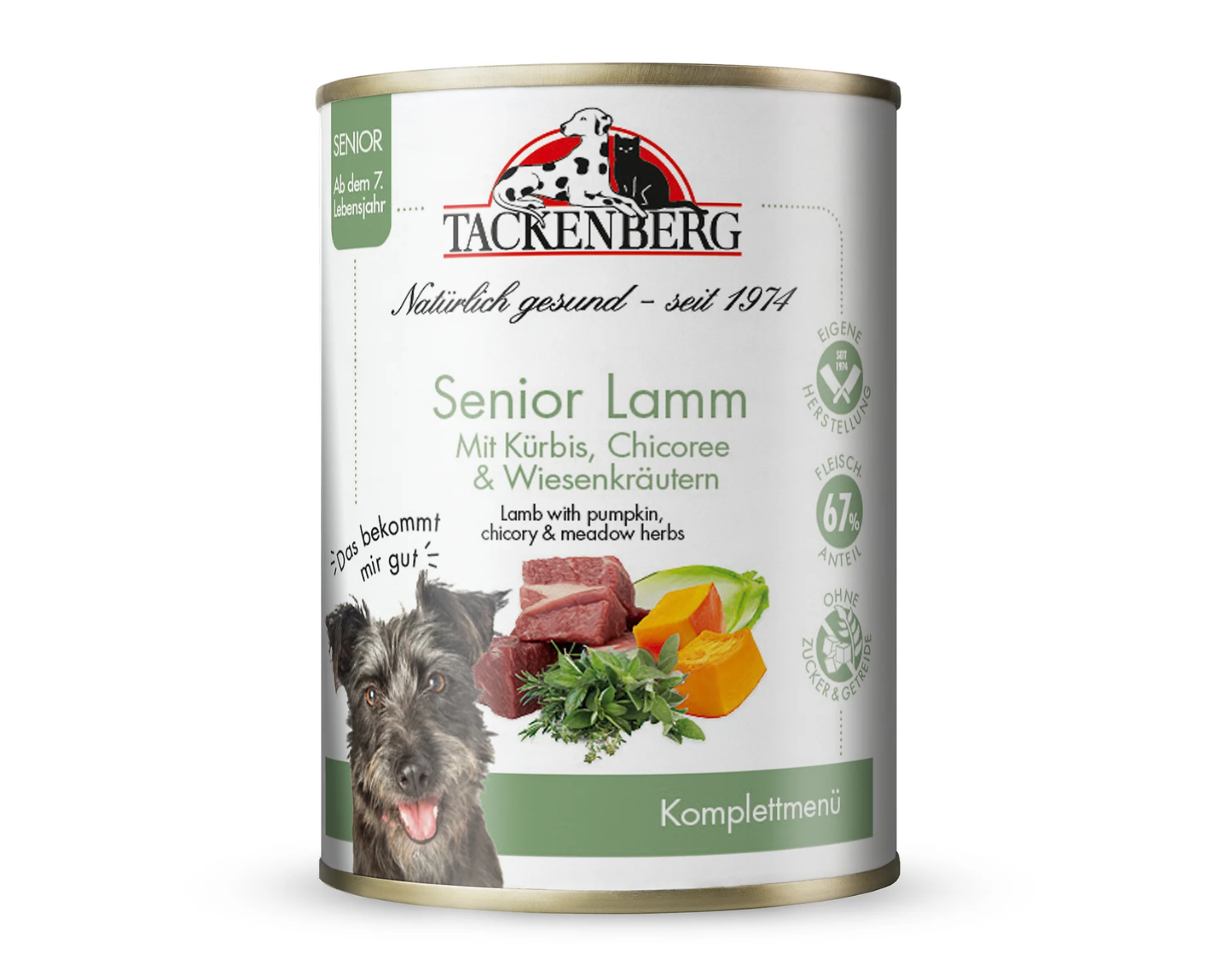 Unsere Seniorenmenüs wurden in enger Zusammenarbeit mit Ernährungsexperten entwickelt. Sie vereinen hochwertiges Lammfleisch, gesunden Kürbis und feine Wiesenkräuter zu einer leicht verdaulichen Proteinquelle, die deinem Vierbeiner wichtige Nährstoffe liefert.