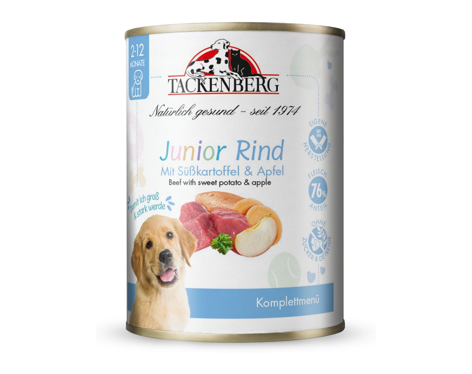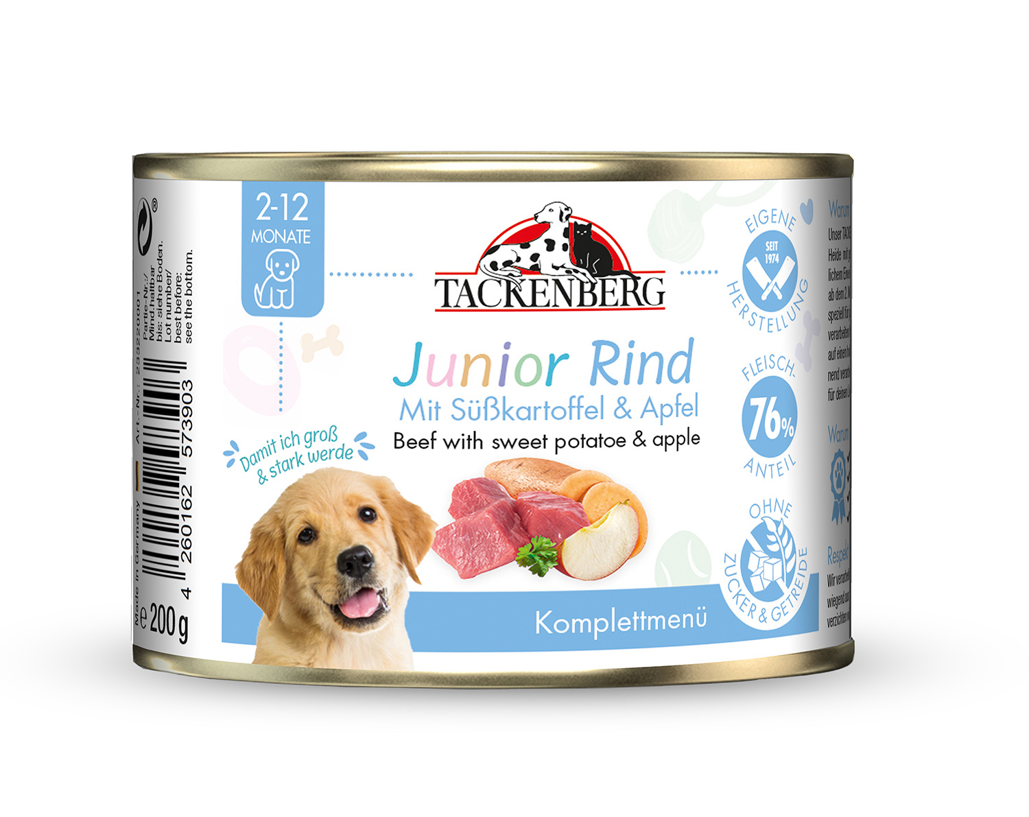Nassfuttermenü für Welpen vom Rind mit Süßkartoffeln & Apfel