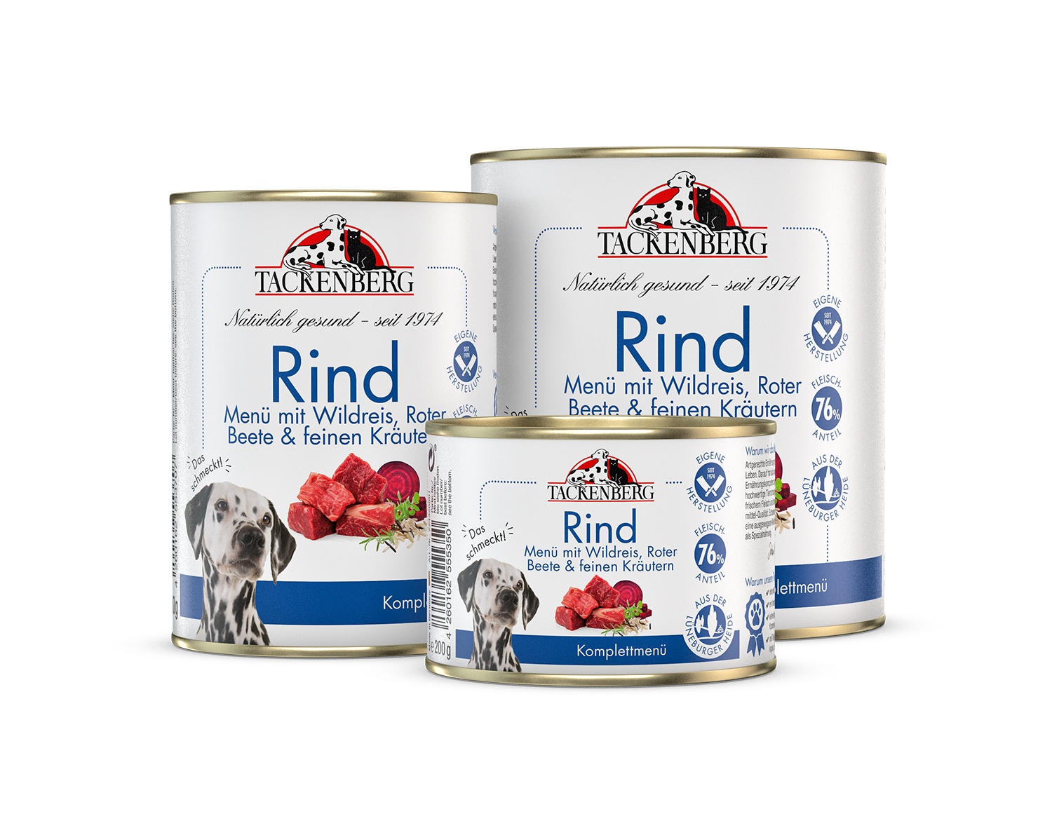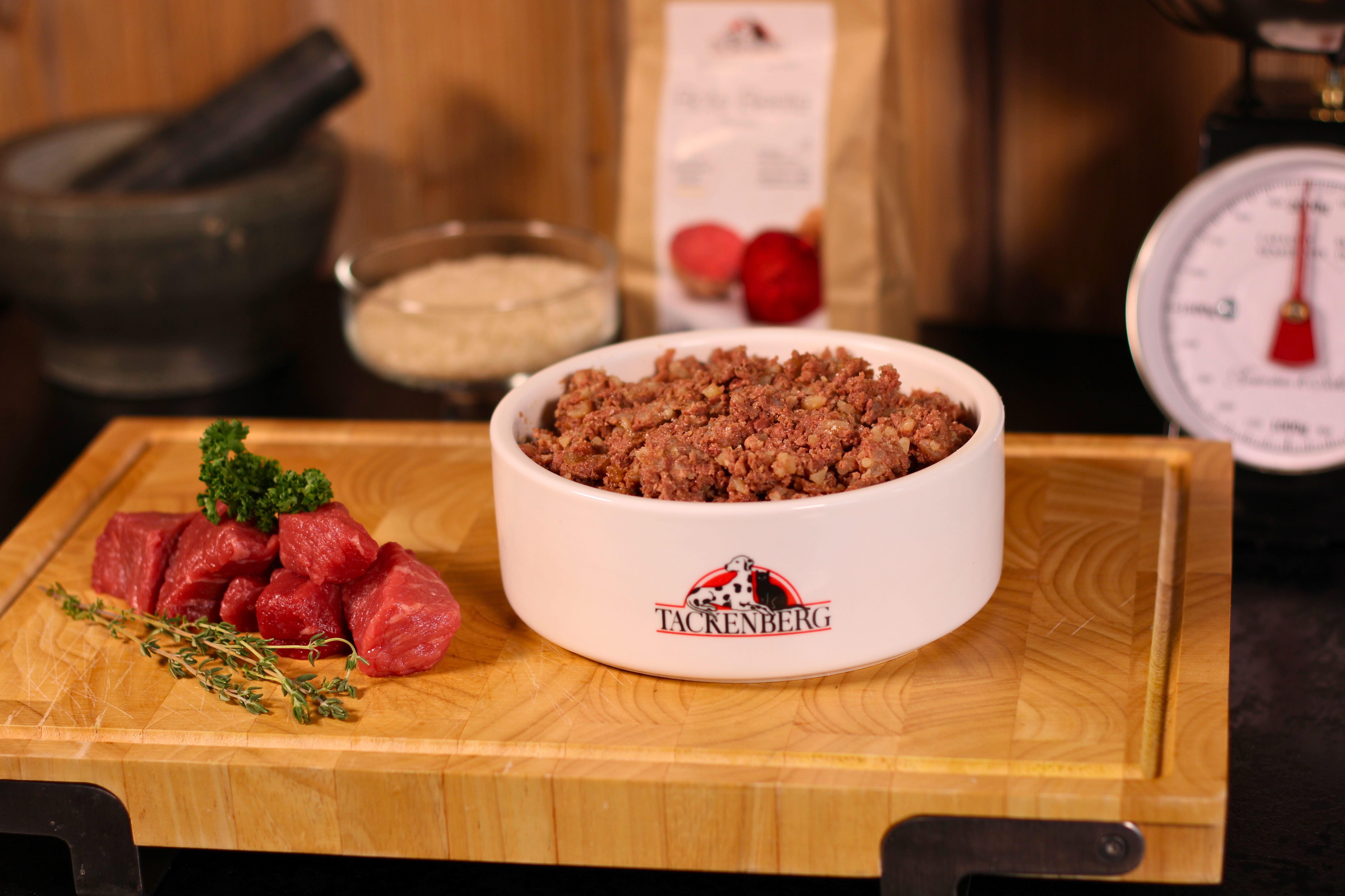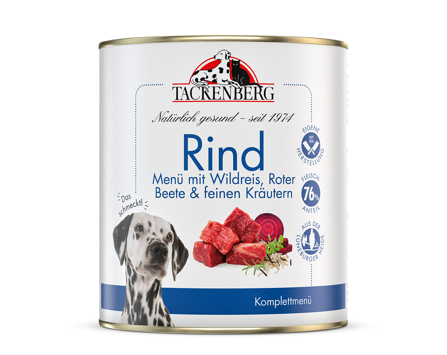 Praktisches Nassfutter-Menü für Hunde: Rind mit Wildreis und Rote Beete