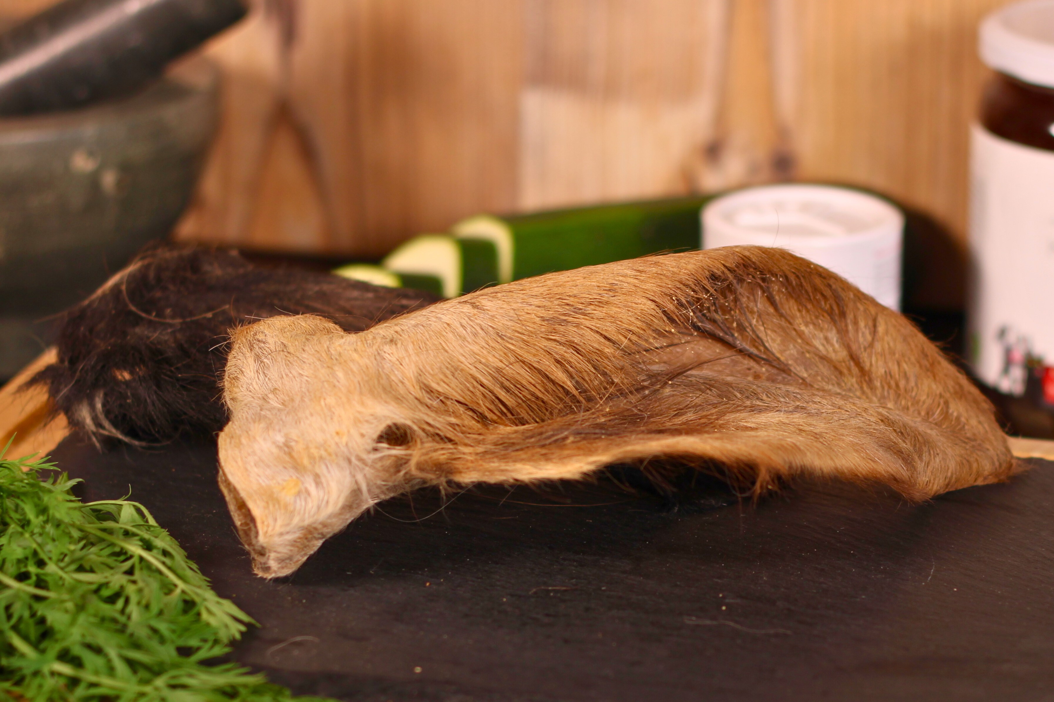 - Naturbelassen getrocknetes Rinderohr mit Fell