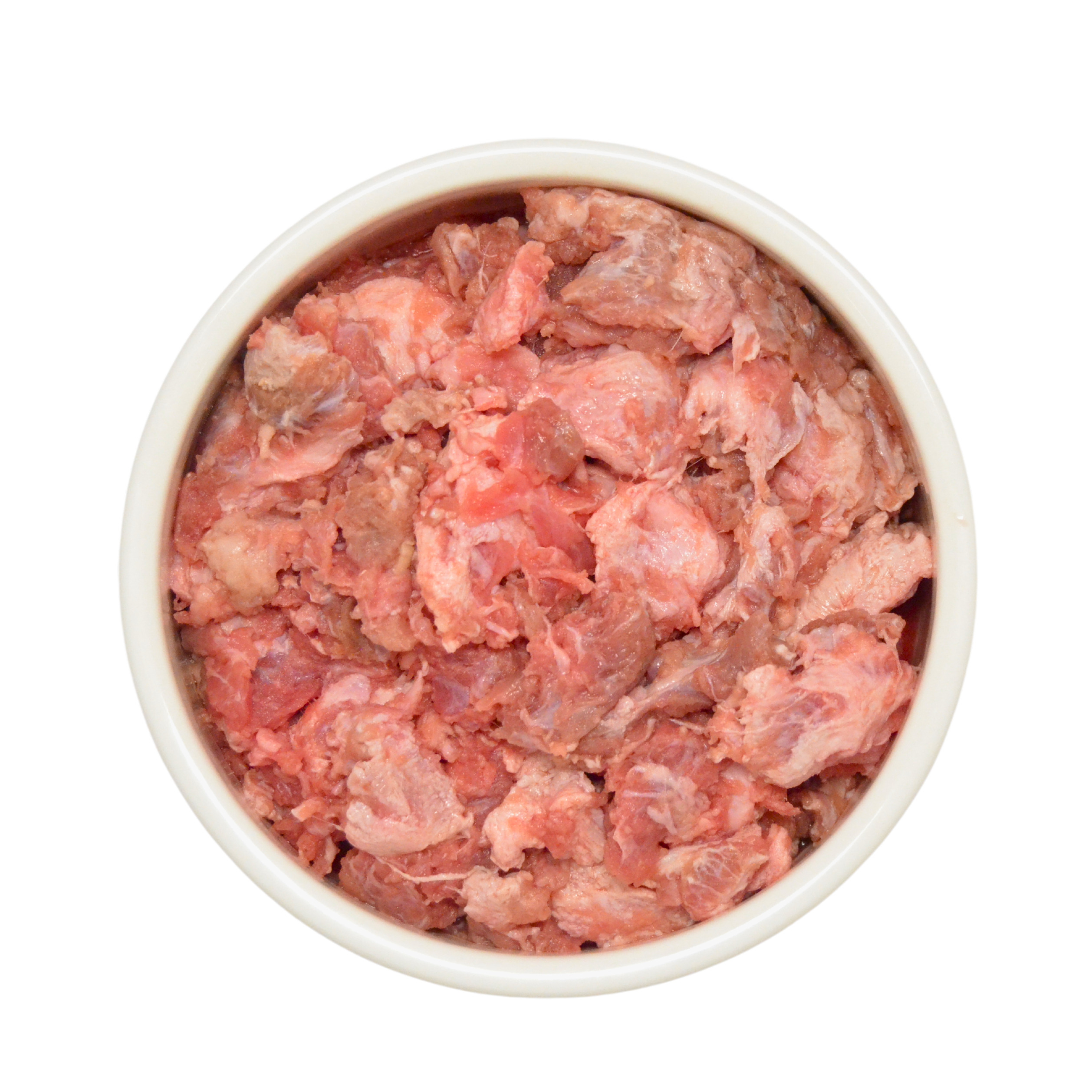 Um eine ausgewogene Mahlzeit zu gewährleisten, empfehlen wir bei Hunden ein Verhältnis von ca. 80 % Fleisch und Innereien und 20 % pflanzlicher Komponente.