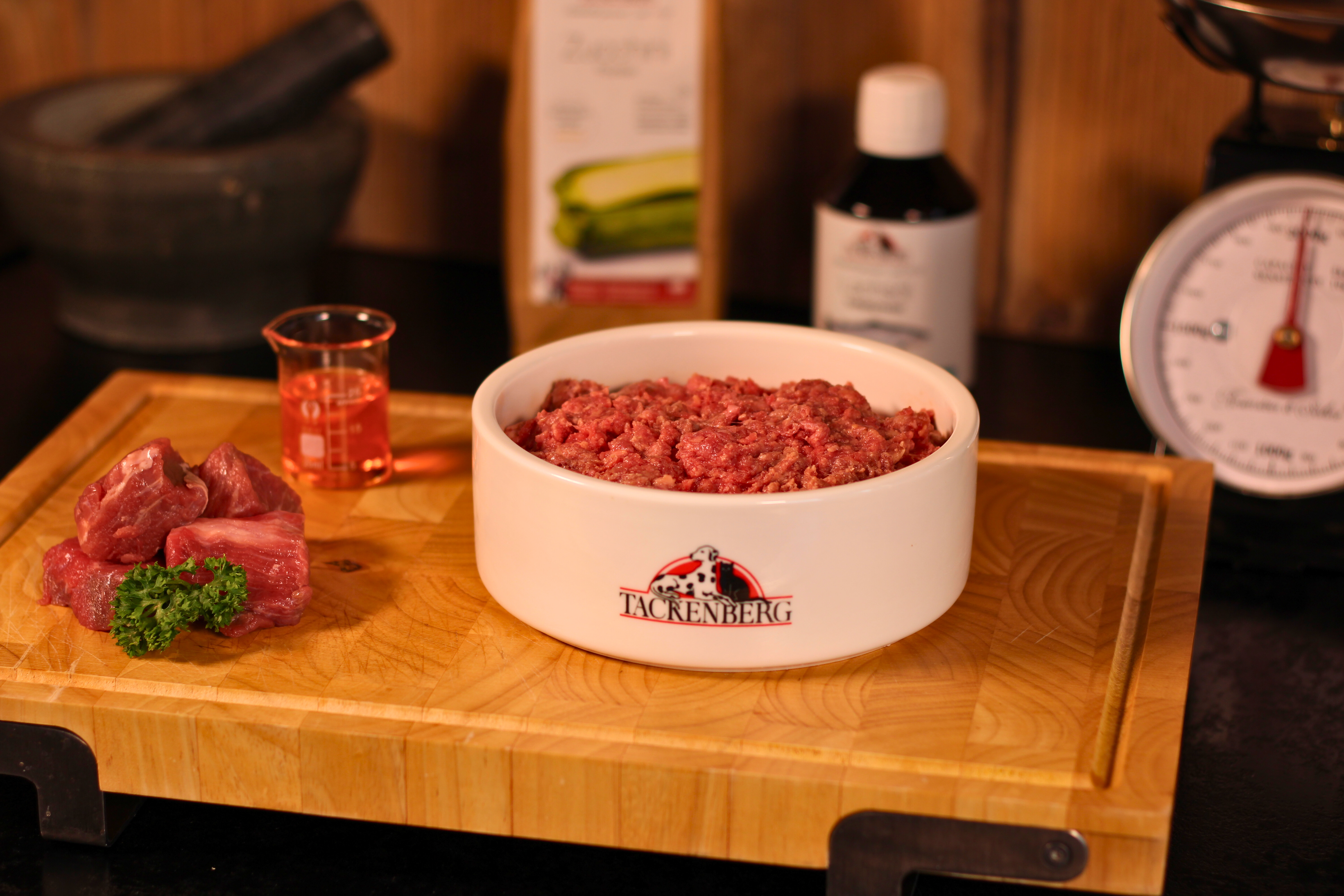 Unser Rindstatar wird aus hochwertigem Muskelfleisch hergestellt, ohne Sehnen und mit wenig Fett. Diese Köstlichkeit bietet deinem Hund und deiner Katze ein unvergessliches Geschmackserlebnis. Die feine Zerkleinerung macht das magere Rindfleisch besonders gut bekömmlich und eignet sich auch für empfindliche Vierbeiner. Die geschmeidige Konsistenz macht das Rindstatar zu einem besonderen Leckerbissen.