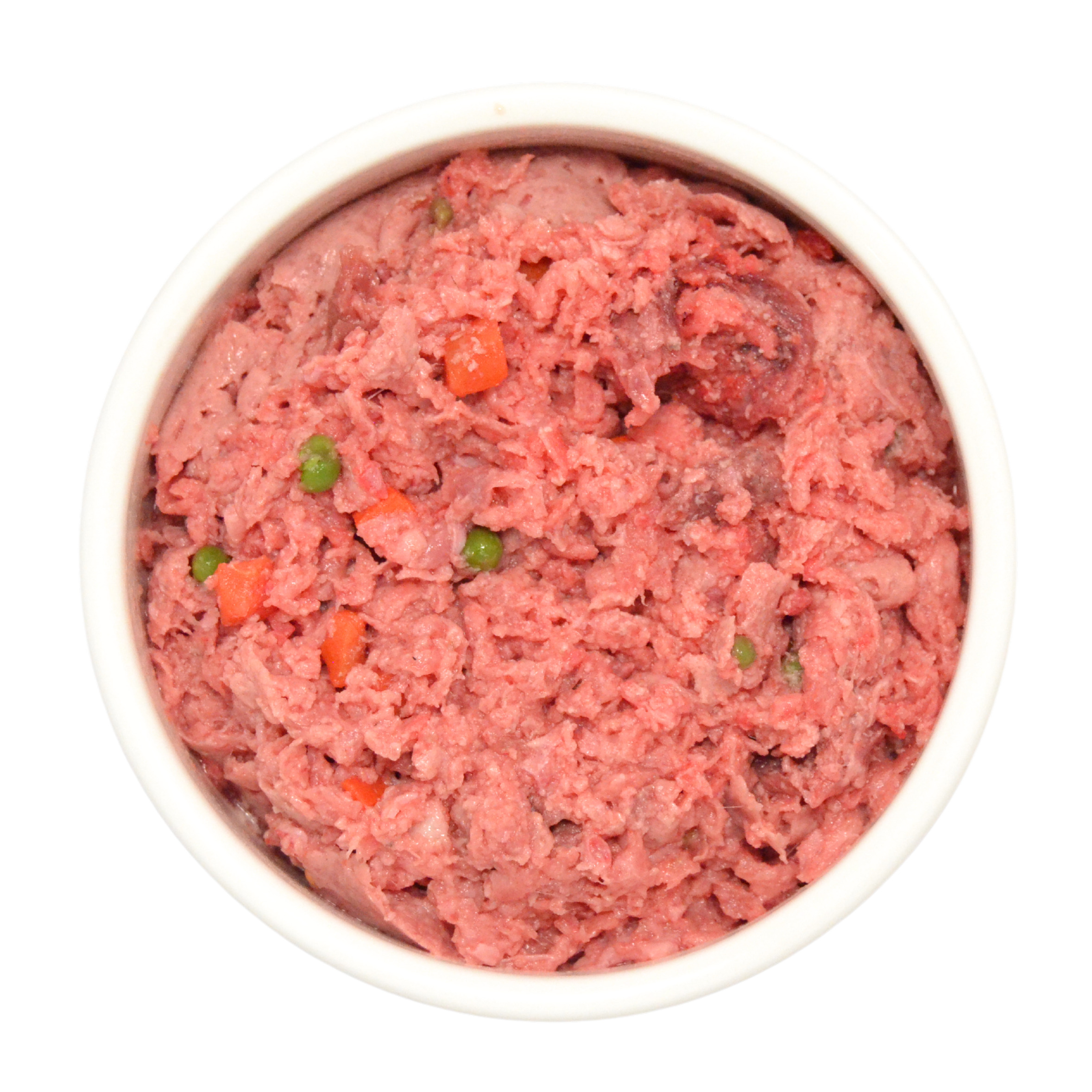Um eine ausgewogene Mahlzeit zu gewährleisten, empfehlen wir bei Hunden ein Verhältnis von ca. 80 % Fleisch und Innereien & 20 % pflanzlicher Komponente.