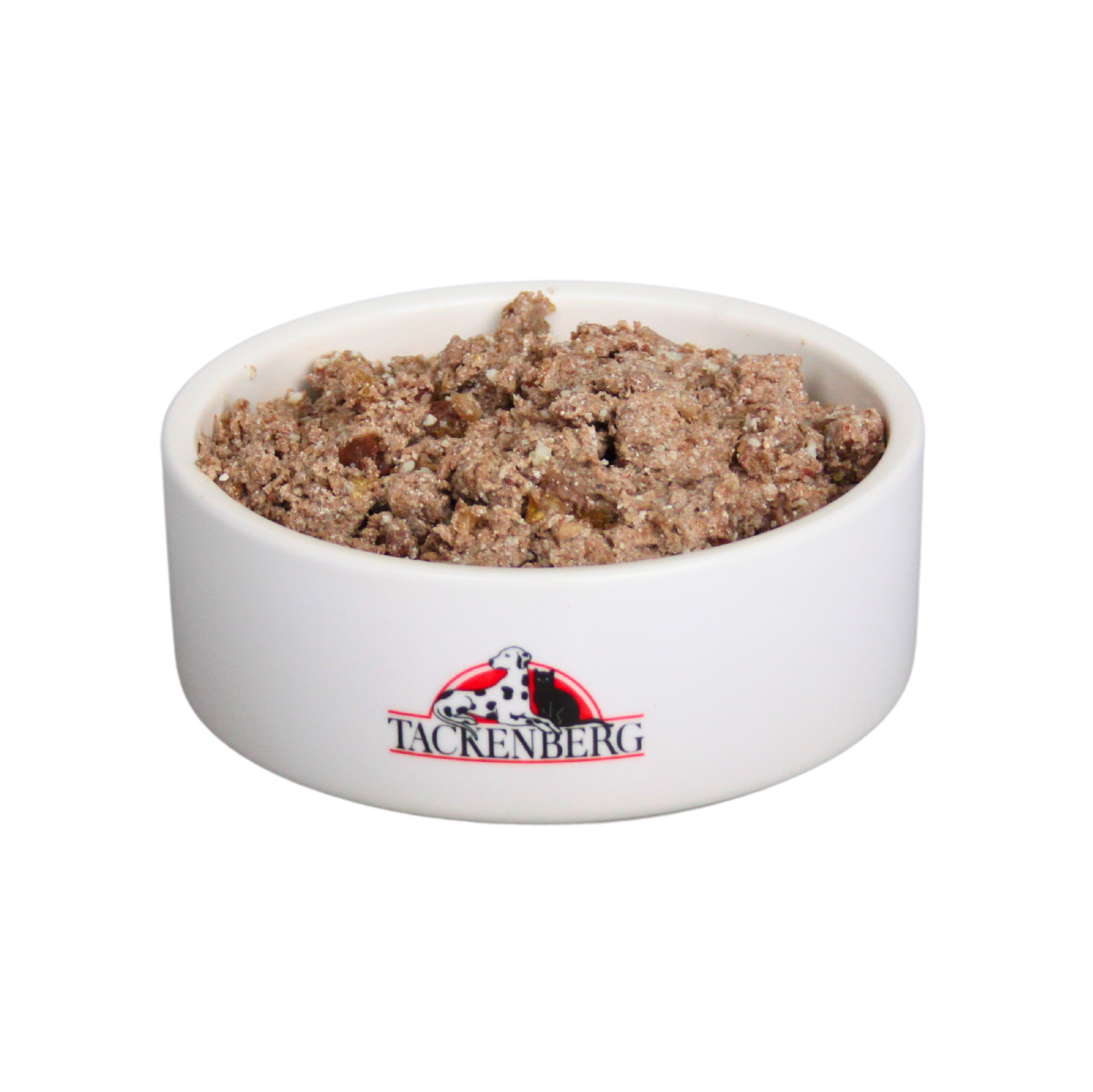 Um eine ausgewogene Mahlzeit zu gewährleisten, empfehlen wir bei Hunden ein Verhältnis von ca. 80 % Fleisch und Innereien & 20 % pflanzlicher Komponente.
